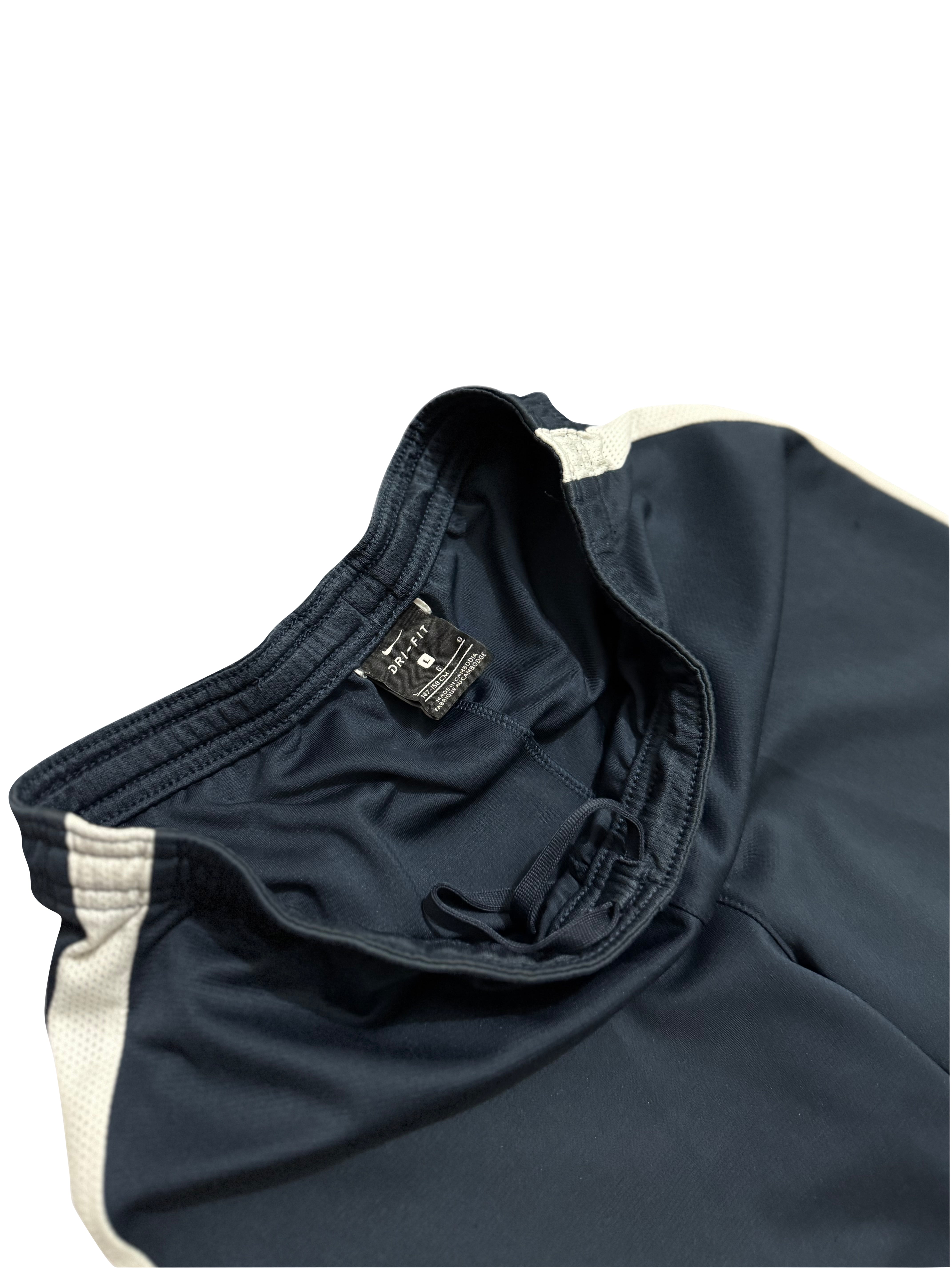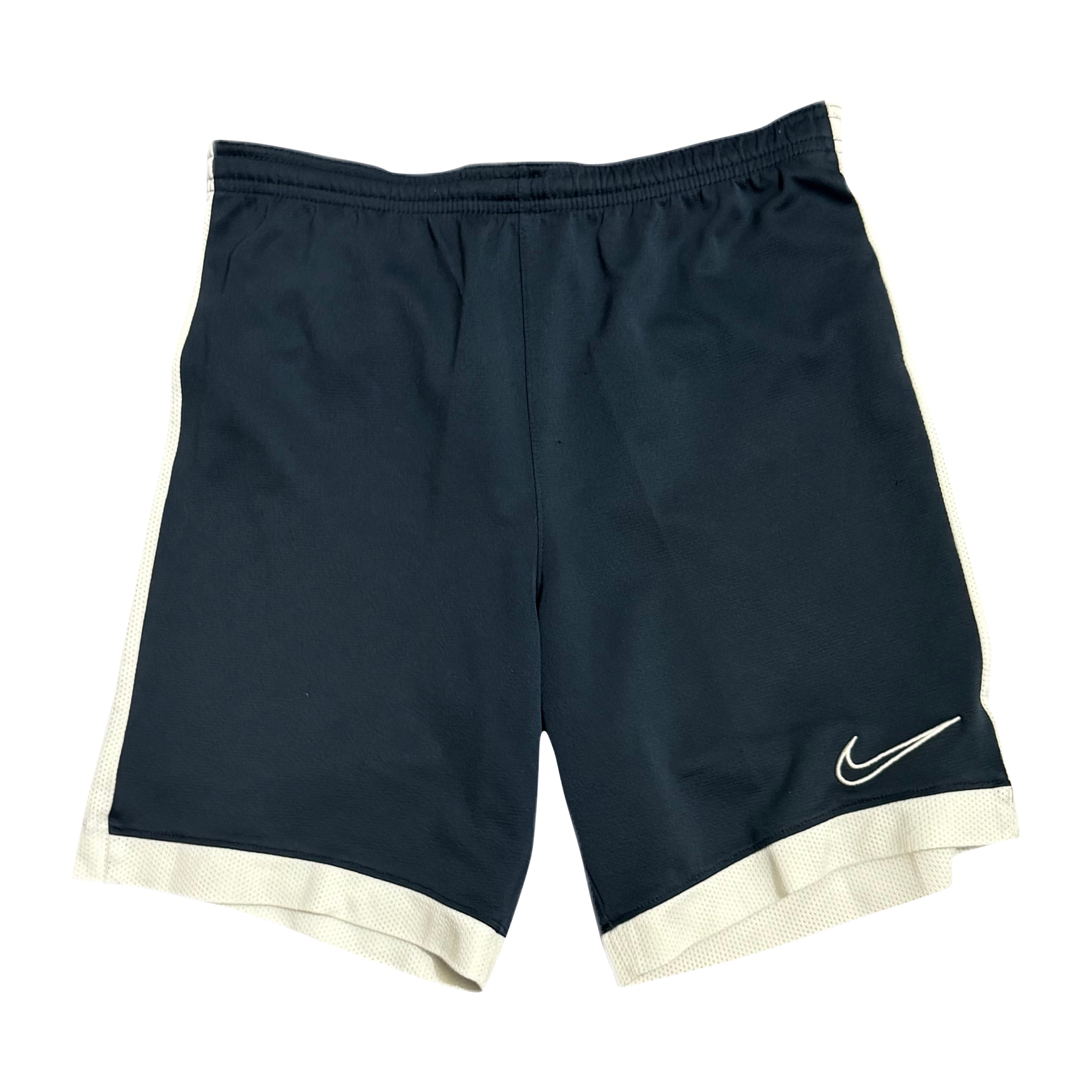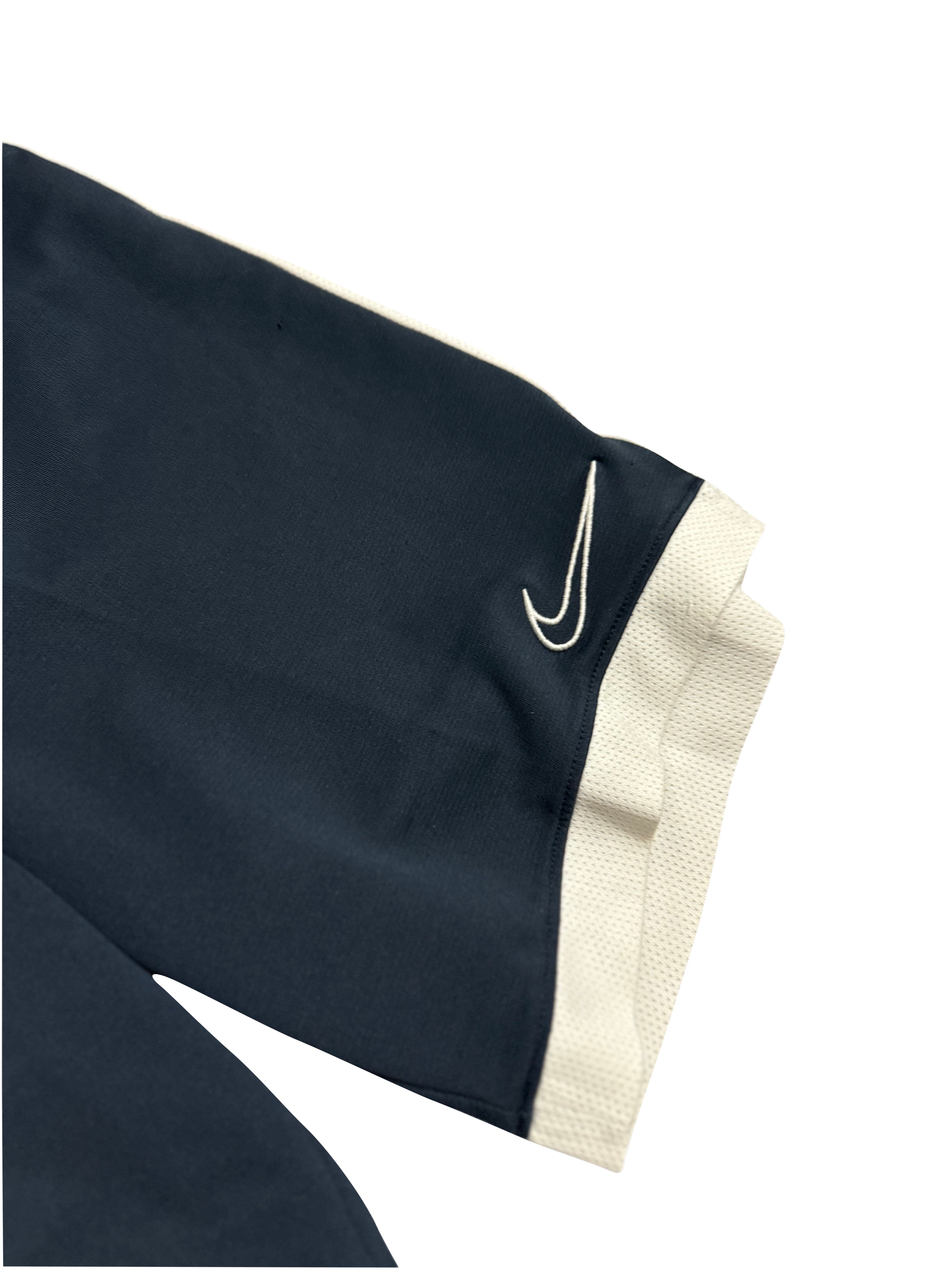 These classic Nike training shorts come in a deep navy blue with contrasting white mesh panels on the sides and hems. Featuring a white embroidered Swoosh, breathable Dri-FIT fabric, and an elastic waistband with internal drawstring, they’re the perfect essential for both sport and casual wear. A timeless Nike piece with performance focus and everyday comfort.