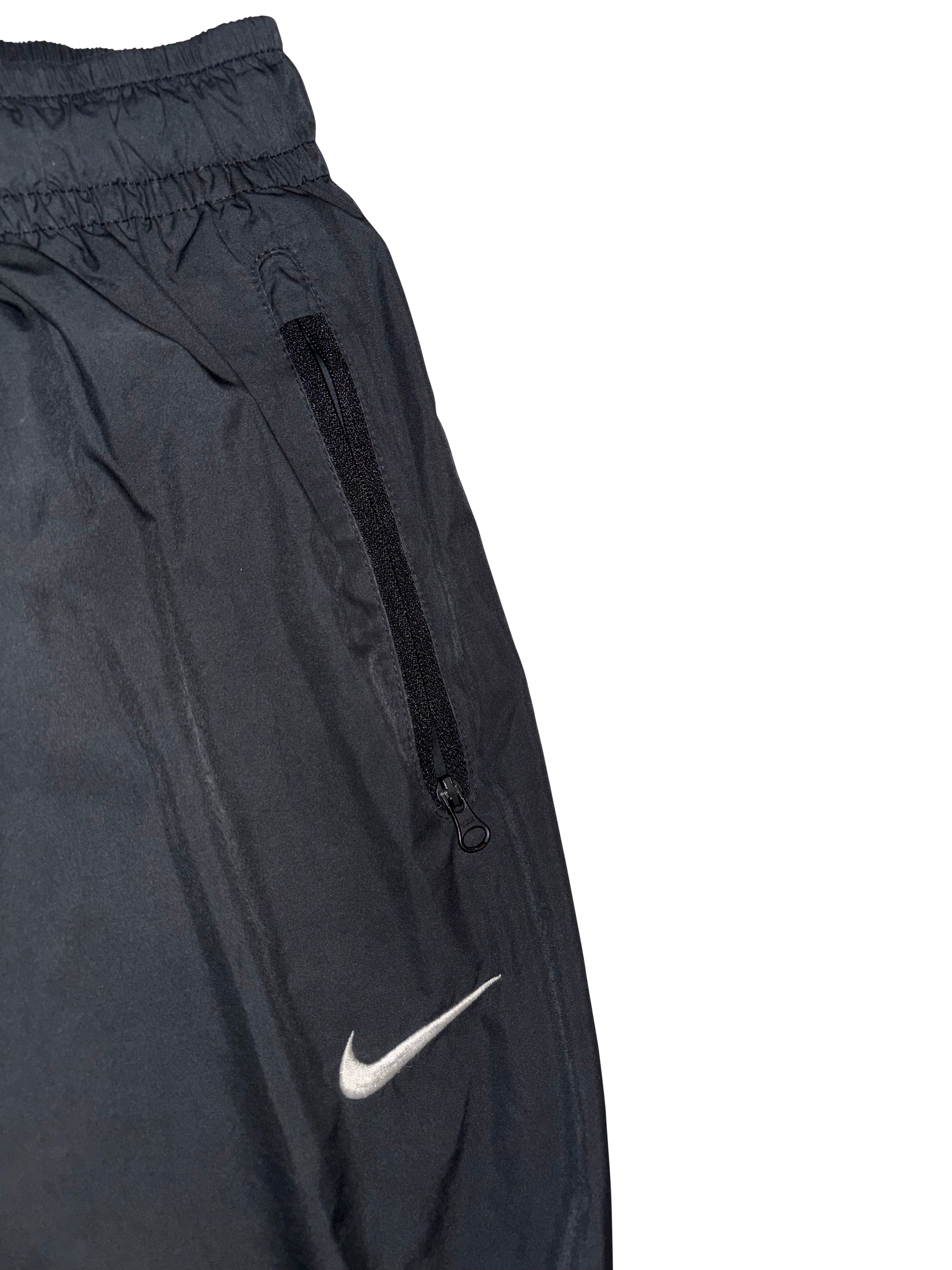 Clean, minimal, and built for comfort – these Nike track pants are a timeless essential for anyone who appreciates classic sportswear. The sleek black design is elevated by a crisp white embroidered Swoosh, while functional details like zippered pockets and adjustable leg openings bring early 2000s techwear energy.